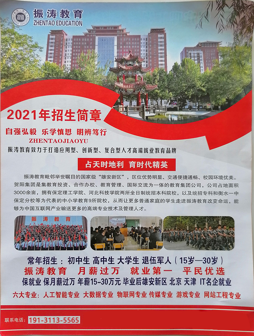 贺阳集团振涛教育招15~35周岁的初中生,高中生,大学毕业生,复转军人,待业青年,毕业保就业,就业保高薪,终身 保就业,您送振涛教育一个孩子,振涛教育还您月入过万的工程师